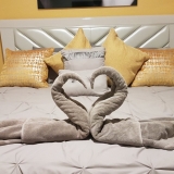 Cuando haya terminado el día en un ambiente tranquilo, encontrará 4 habitaciones muy cómodas que le permitirán descansar y recargar las baterías. Las 4 habitaciones están diseñadas individualmente y le dan al huésped un carácter moderno. La suite principal, ubicada en un lado de la casa para mayor privacidad, ofrece una amplia sala de estar, cama King, televisor LCD HD, vestidores y acceso directo al baño principal, así como acceso directo al área de la piscina. Conectado y separado por una puerta corrediza está el baño principal el cual es muy espacioso. Los otros 3 dormitorios están en el otro lado de la casa. El dormitorio 2 tiene una cama king size. y TV de alta definición, el dormitorio 3 tiene dos camas individuales que se pueden combinar en una cama tamaño king en 5 minutos y el dormitorio 4 tiene una cama doble tamaño queen. Todas las habitaciones tienen ventiladores de techo y una iluminación ambiental indirecta, controlable por control remoto desde la cama.