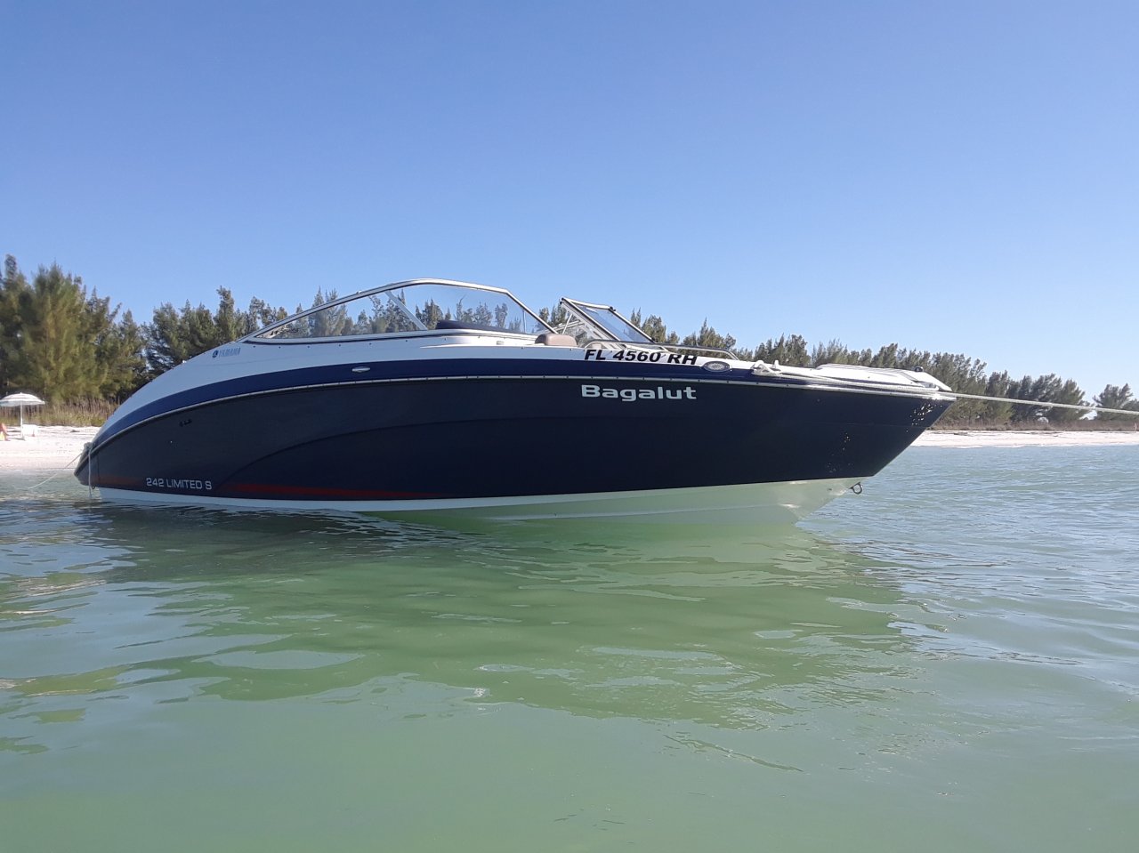Notre bateau est un Jetboat de marque Yamaha d’une longueur d’environ 8 mètres et d’une puissance de 360 HP. Le bateau a deux moteurs internes et ni un pensionnaire extérieur ni des hélices installées d’une autre manière. Encore et encore, il arrive en Floride avec des pensionnaires extérieurs à des accidents dans lesquels des vacanciers sont blessés. En éliminant les hélices, le bateau peut également être manœuvré plus près de la plage.