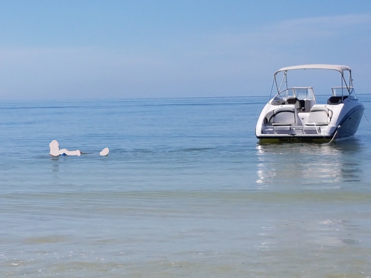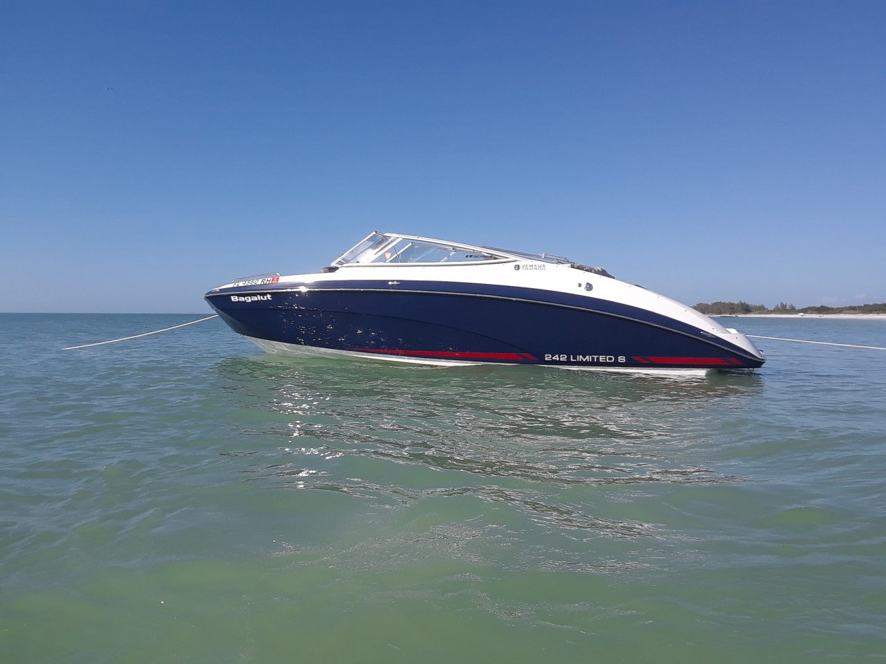 Notre bateau est un Jetboat de marque Yamaha d’une longueur d’environ 8 mètres et d’une puissance de 360 HP. Le bateau a deux moteurs internes et ni un pensionnaire extérieur ni des hélices installées d’une autre manière. Encore et encore, il arrive en Floride avec des pensionnaires extérieurs à des accidents dans lesquels des vacanciers sont blessés. En éliminant les hélices, le bateau peut également être manœuvré plus près de la plage.